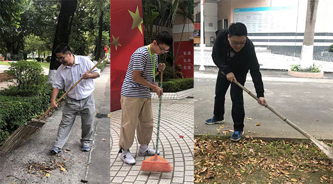 2019级学生在学院领导、老师的带领下,一起清扫校道及课室等劳动实践实验区我们期待,大家在接下来的“劳作”生活中,能够延续军训中吃苦耐劳、不畏艰难的优秀品质;也期待同学们能将“工匠之心,精益求精”的口号牢记心中,能保持一颗积极向上的心,在这一年的劳作生活中每天都能拥抱灿烂的阳光!