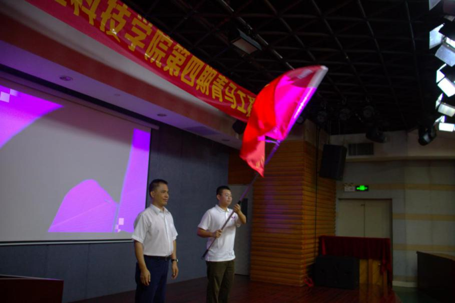 开班仪式上,学院党委副书记丘永辉老师为第四期青马班团支书授旗,并宣布肉漫画