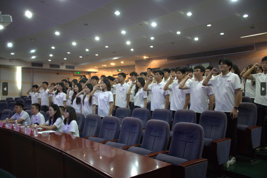 紧接着青马班班主任陈伟鹏老师为学员们介绍青马班概况以及朋辈导师和各位顾问。朋辈导师、学院学生会主席团成员林琪欣带领全体学员进行宣誓。