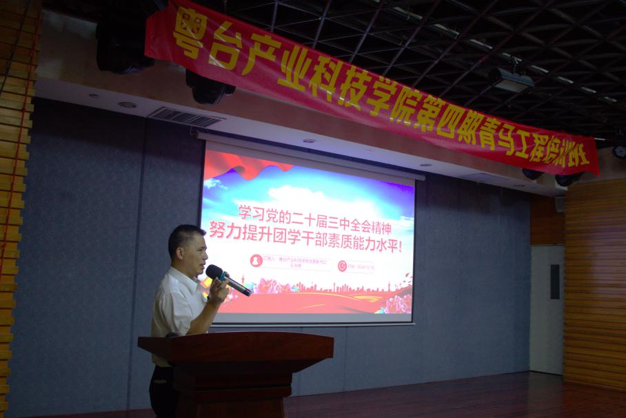 开班仪式结束后,学院党委副书记丘永辉老师就“学习党的二十届三中全会精神,努力提升团学干部素质能力水平”为题为学员做了一节精彩的报告。