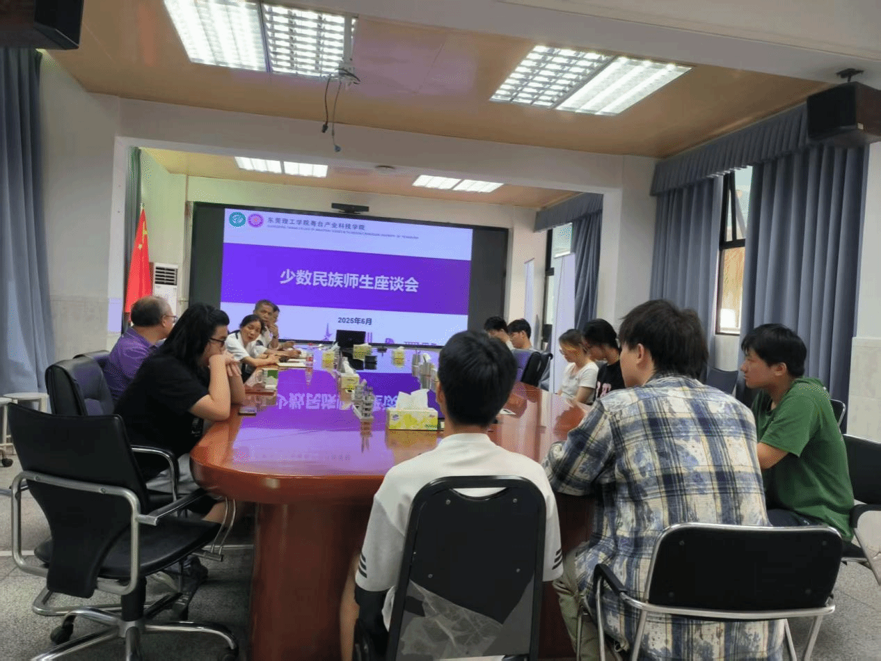 少数民族师生座谈会在莞城校区实验楼302举行。学院党委书记宋美娴、副书记丘永辉、教务长黄灯奎,辅导员李佳静及少数民族学生参加会议。会议由李佳静主持。