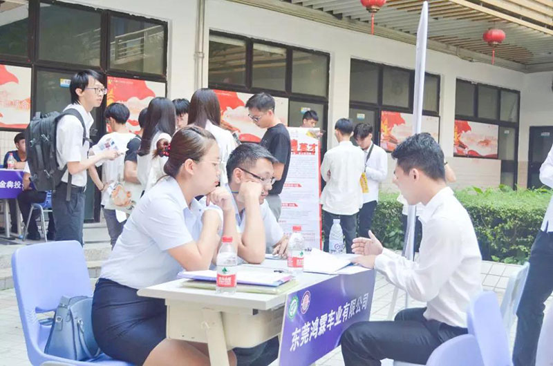 2019年学生实习招聘会在莞城校区实验楼中庭举行。本次招聘会共有五十家企业参加,提供近千个岗位,覆盖技术、营销、行政等类型,涉及工业设计、经济与金融、跨境电商、多媒体设计、机械设计制造及其自动化、自动化等专业。本次招聘会在教务办副主任陈尚彦主持下进行。
