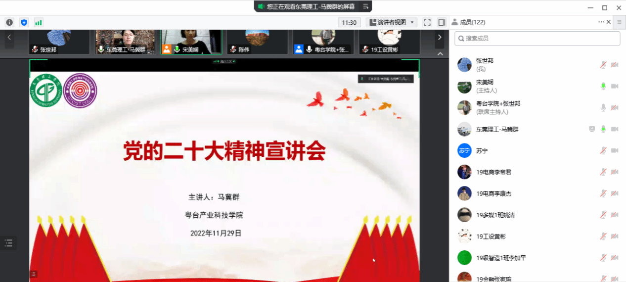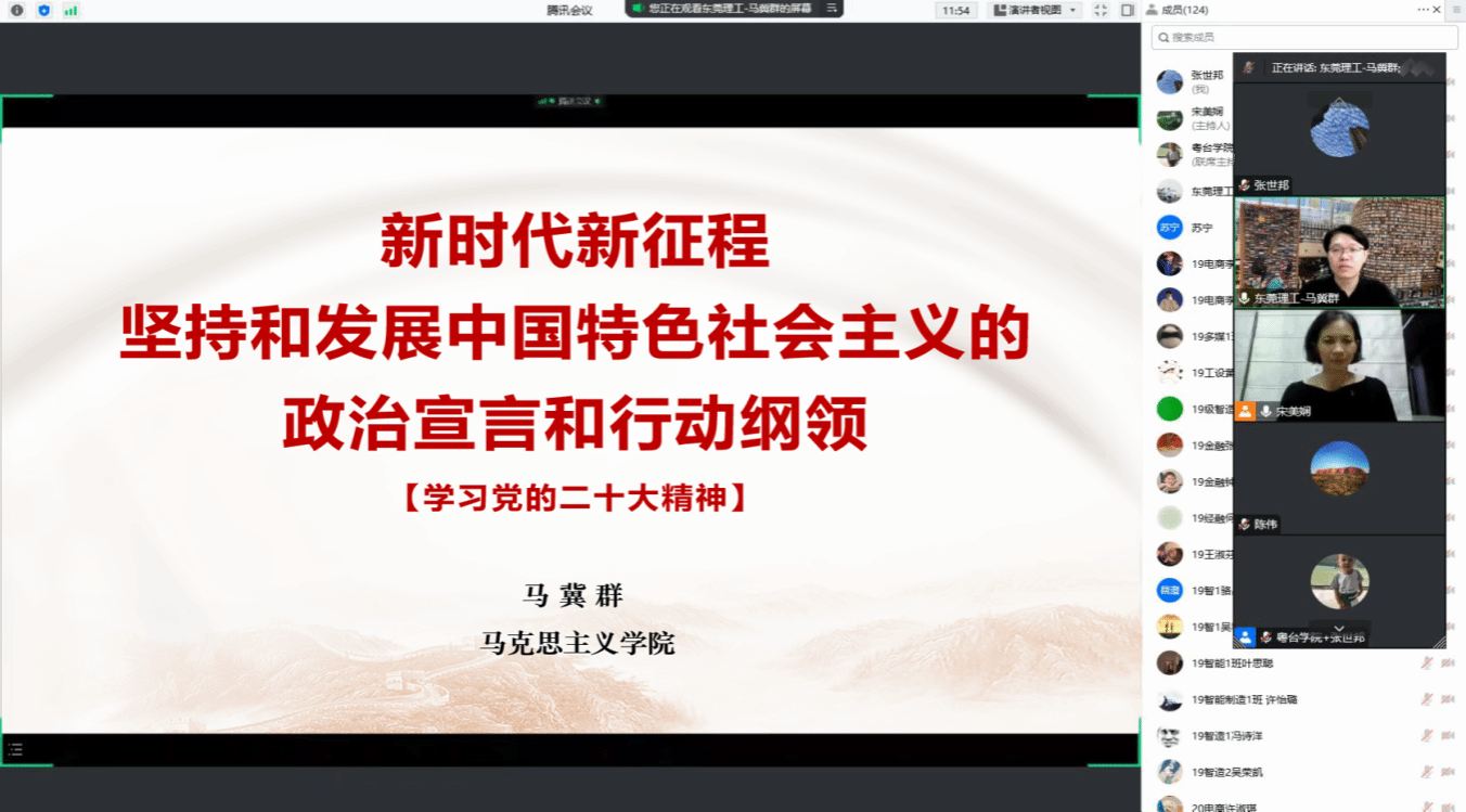 党委邀请马克思主义学院马冀群博士宣讲党的二十大精神。会议由学院党委书记宋美娴主持,学院全体教职工和师生党员共120多人参加了线上学习。