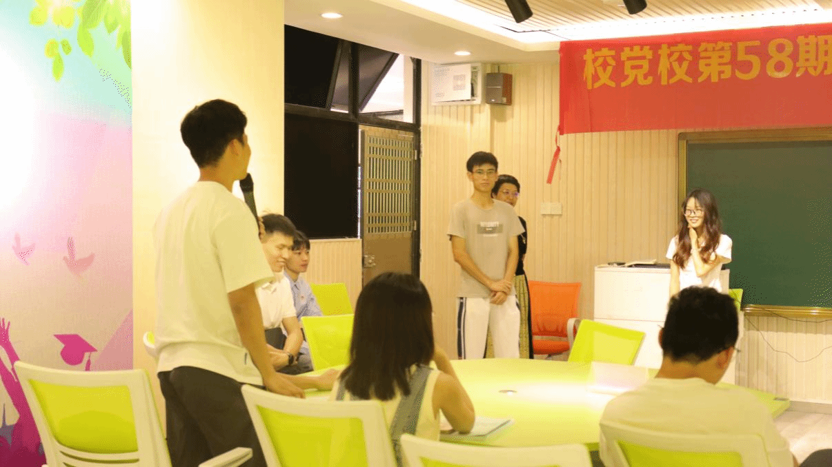 分党校在实验楼406智慧教室开展“榜样示范教育活动”。应届优秀毕业生党员19级洪坚淮、19级张致豪和20级学生党员谢莹作主题发言,他们分别结合学习生活、学生会工作、考研考公等各方面的经验与入党积极分子进行了分享与交流。