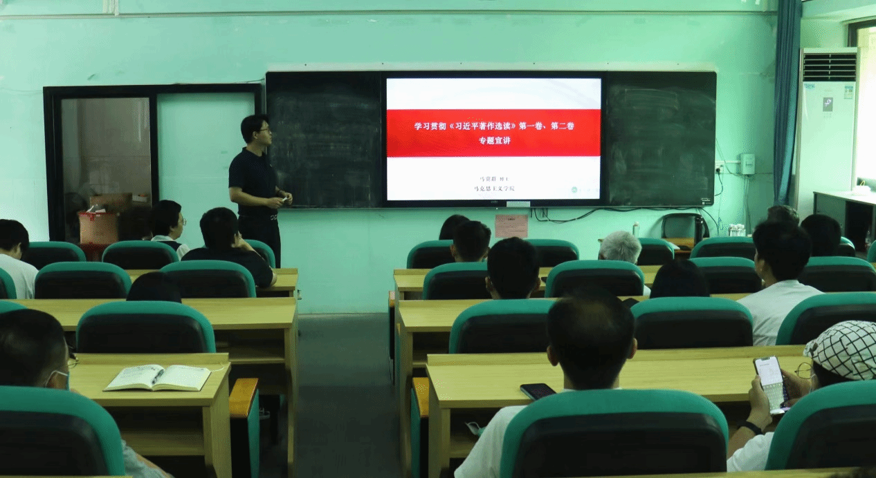 紧接着,马冀群博士对《习近平著作选读》第一卷、第二卷做了详细解读,重点围绕如何联系实际学好用好这权威教材、把握其核心要义做了辅导宣讲。