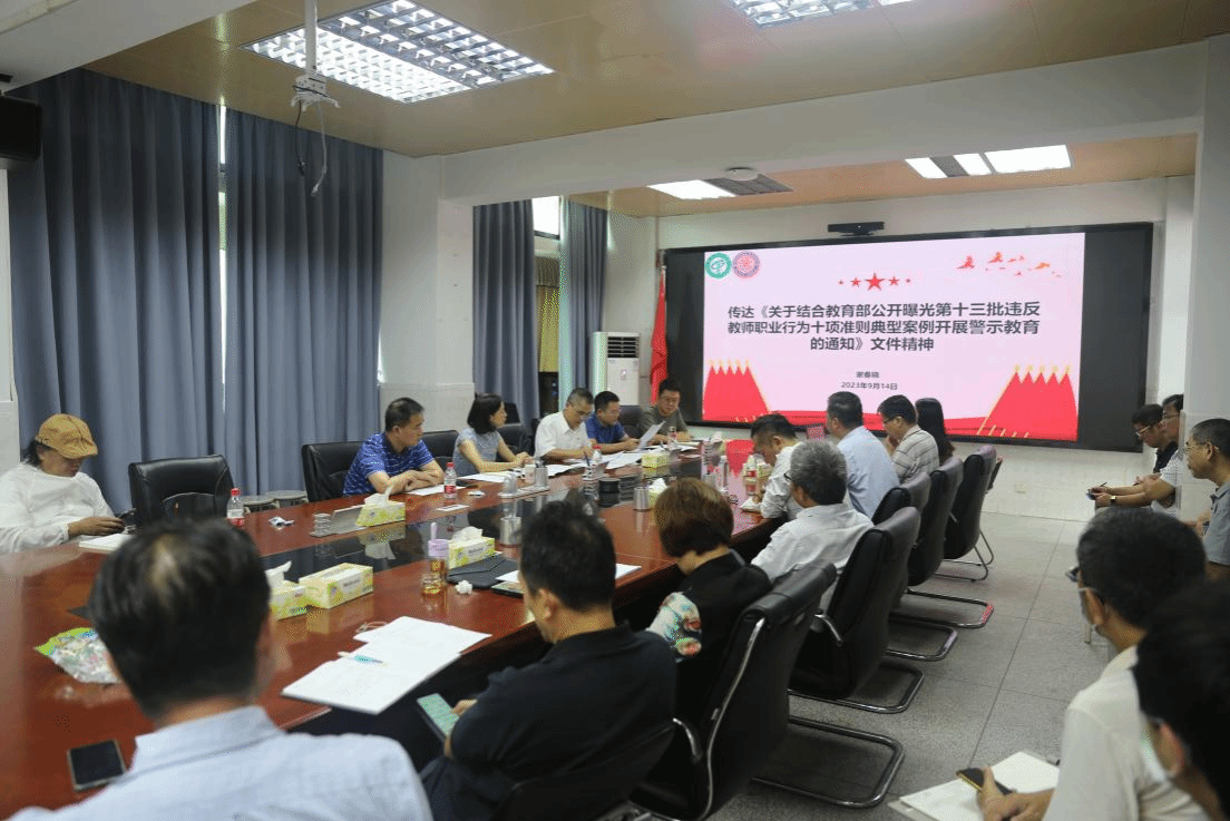 在实验楼302会议召开教职工政治理论学习会暨师德师风建设专题学习会议,学院领导宋美娴、谢春晓、李奇及全体教职工参加,会议由党委负责人丘永辉主持。