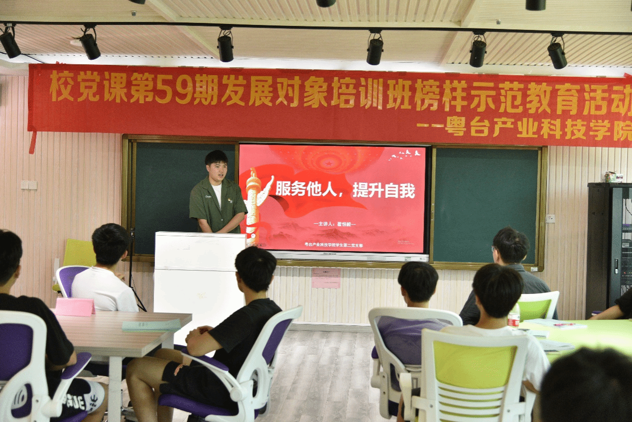 在莞城校区实验楼406智慧教室开展第59期发展对象培训班“榜样示范及理想信念教育活动”。学院邀请了学生党员代表梁雨林、翟恒毅和康洁思进行了分享交流。学院党委负责人丘永辉进行了总结发言,活动由学院组织员袁伴玲主持。