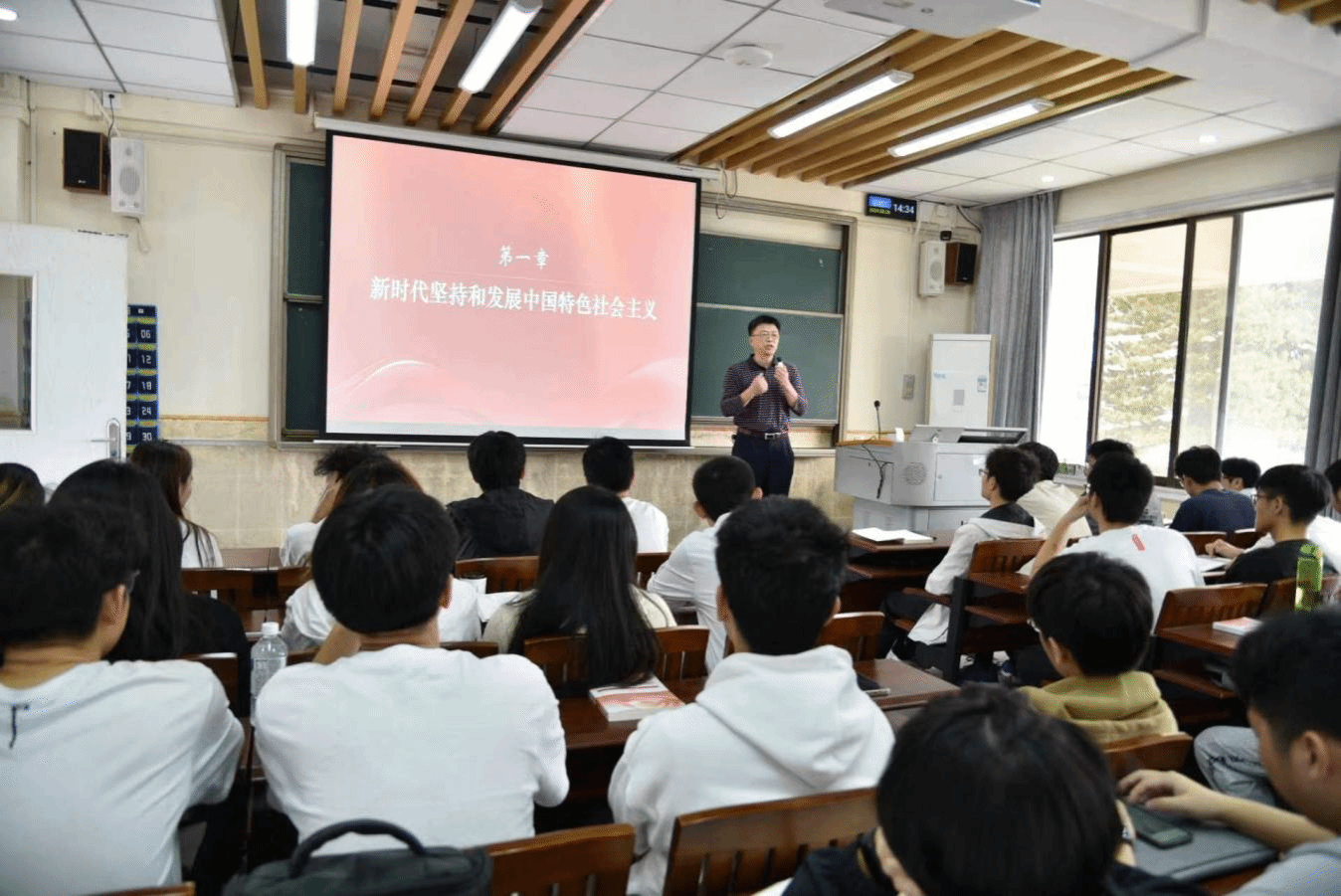 院长陈伟以“新时代坚持和发展中国特色社会主义”为主题在莞城校区五号楼303教室为2023级工业设计专业和计技设计专业的同学上2024年春季学期思政第一课。