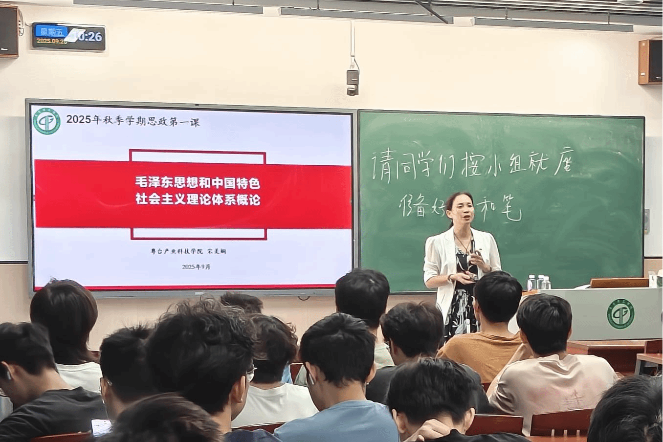 党委书记宋美娴在莞城校区1号楼301教室为2024级(粤台)工业设计1班、电商1-2班和计技1班共130名学生上“思政第一课”。