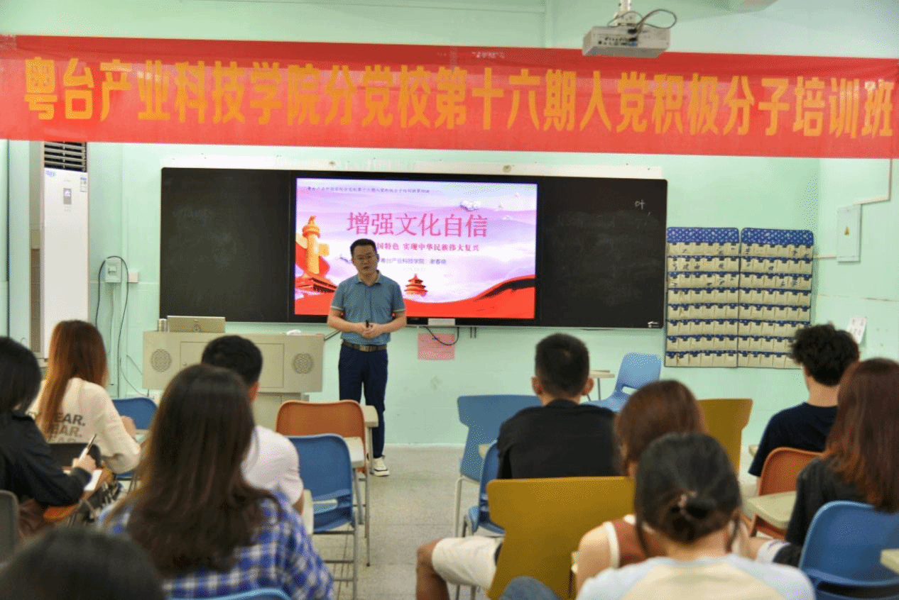 分党校在莞城校区实验楼315教室举行第十六期入党积极分子培训班第四讲。学院党委委员、副院长谢春晓为入党积极分子上党课,全体入党积极分子参加培训。