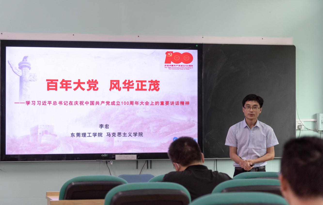 李宏以《百年大党 风华正茂》为题,紧紧围绕习近平总书记“七一”重要讲话的重点内容,分别从八个方面的总结概括,系统解读了习近平总书记“七一”重要讲话的重大意义和丰富内涵,深刻阐明了习近平总书记“七一”重要讲话中的新思想、新理论和新观点。他指出“七一”重要讲话是一篇马克思主义纲领性文献,要在把握“七一”重要讲话精神实质的同时,深刻领会贯穿其中的辨证唯物主义和历史唯物主义世界观、方法论。他强调中国共产党的百年奋斗历程已取得卓越成就,但未来的道路依然充满挑战,要以实现中华民族伟大复兴为己任,增强做中国人的志气、骨气和底气,立足本职岗位,为推动学院发展而努力奋斗。