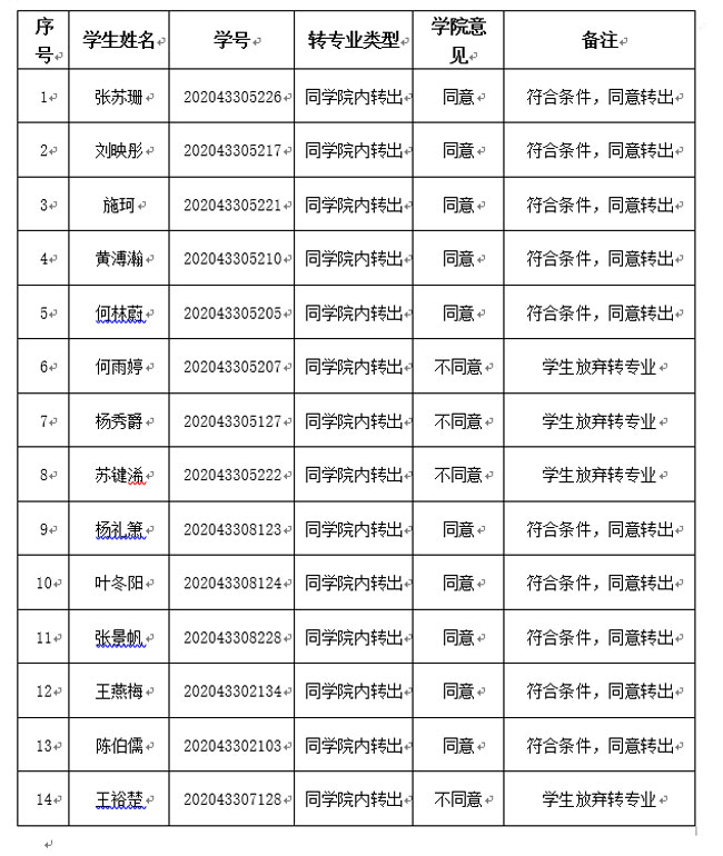 应《关于2020-2021学年第一学期受理学生转专业工作的通知》要求,根据《东莞理工学院本科生转专业实施办法》(莞工〔2015〕47号)及《肉漫画 转专业考核方案》,经学院党政联席会议审批,现将申请转出的学生审批结果公布如下。
