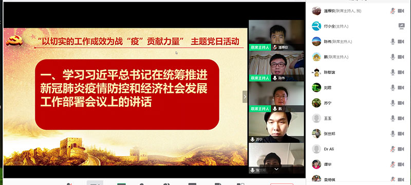 通过“腾讯会议”APP开展“以切实的工作成效为战‘疫’贡献力量”主题党日活动,会议由党支部书记陈伟主持。
