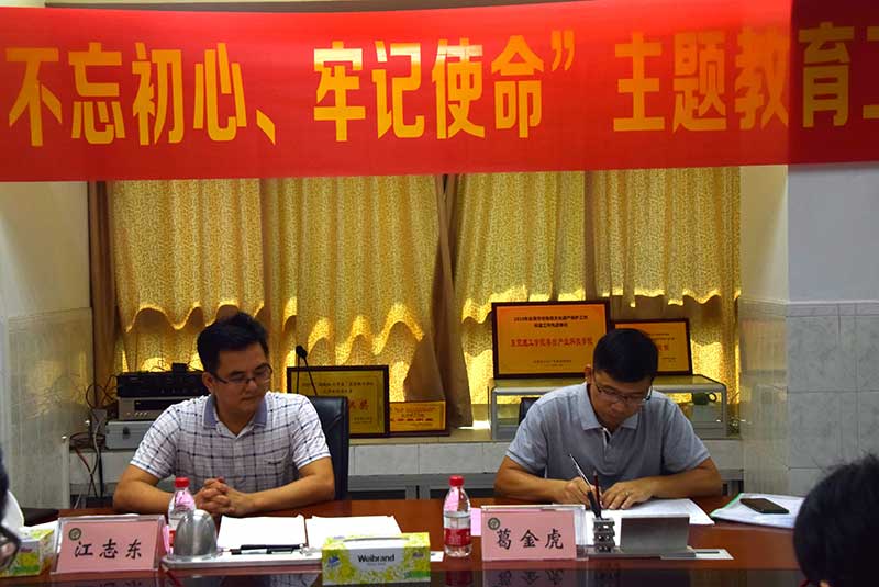 直属党支部在实验楼302召开了“不忘初心、牢记使命”主题教育工作会议,学校主题教育指导组成员江志东同志和葛金虎同志出席了本次会议。