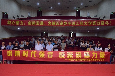 的教工党员、学生党员、发展对象和入党积极分子等,他们用嘹亮美妙的歌声歌唱,洋洋盈耳,奋发昂扬,时代的强音在此唱响,磅礴的力量在此凝聚。