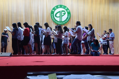 党支部书记陈伟同志用雄浑的歌声引领着老师和同学们唱出时代之气,副书记王玉同志用振奋的话语激励同学们要把磅礴的力量凝聚起来。