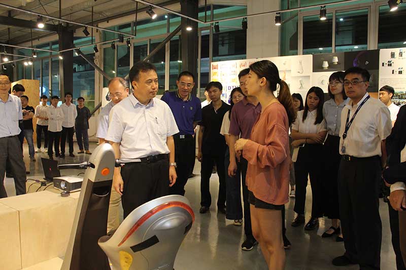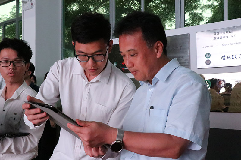 工业设计系秉承“业界出题、粤台解题”的理念,主要展示了项目启动、产学融通、跨专业团队的学习成果,包括DTV履带车、凡而洗手液、巫耳机工作室、吉洋自动化科技等,目前部分项目已经在申请专利。