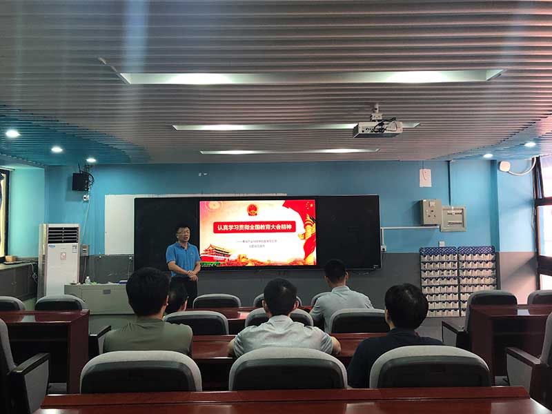 科技学院直属党支部在实验楼217组织开展主题党日活动,认真学习贯彻全国教育大会精神。