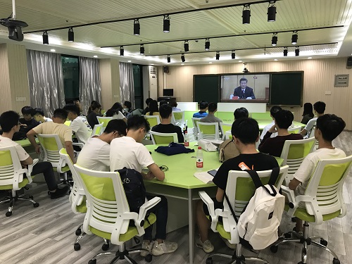 组织师生在实验楼407集中收看纪念五四运动100周年大会直播盛况。党支部书记陈伟、副书记王玉与师生一道认真学习习近平总书记在大会上的重要讲话。