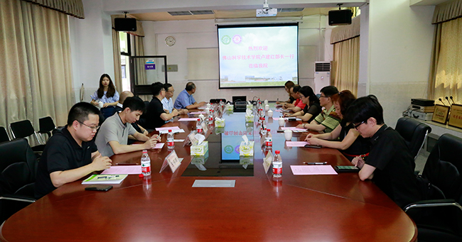 5月15日,佛山科学技术学院统战部部长卢建红、国际合作与交流处处长龚武、教务处副处长黄兴国等到肉漫画 参访交流,肉漫画 院长陈伟、院长王春源等与客人进行了座谈,分享两岸合作办学经验。