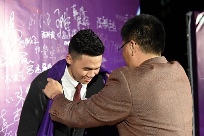 的第一届学生陈敏超师兄跟同学们分享感想。身在台湾奋斗的师兄姐也通过VCR带来了祝福。