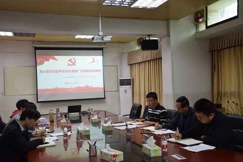党支部在实验楼302举行专题学习会,继续深入学习习近平总书记视察广东重要讲话精神,会议由党支部书记、院长陈伟主持,全体党员参加。