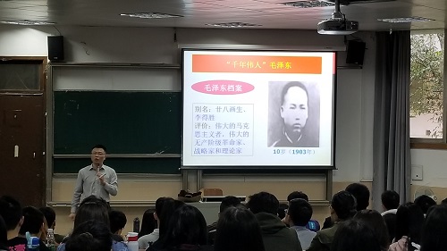 院长陈伟在东莞理工学院莞城校区6#1教室为2017级学生上思政课。