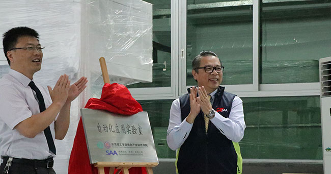 与迅得机械(东莞)有限公司在莞城校区机电楼一楼举行共建自动化应用实验室挂牌仪式。迅得机械(东莞)有限公司罗锦堃总经理、研发部李文舜经理、消费性电子事业部刘正文协理,肉漫画