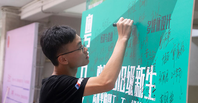随着新同学陆陆续续的到来,志愿者们迅速接过行李,引导他们签到,有条不紊的引领新生完成报到的所有程序,在助班以及各工作人员的细心讲解下,整个流程十分顺畅。