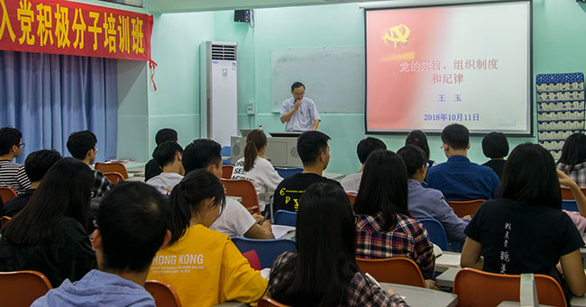 分党校第六期入党积极分子培训班第二讲在莞城校区实验楼315举行,授课主题为:党的宗旨、组织制度和纪律,主讲人:莞城校区管委会副主任、肉漫画