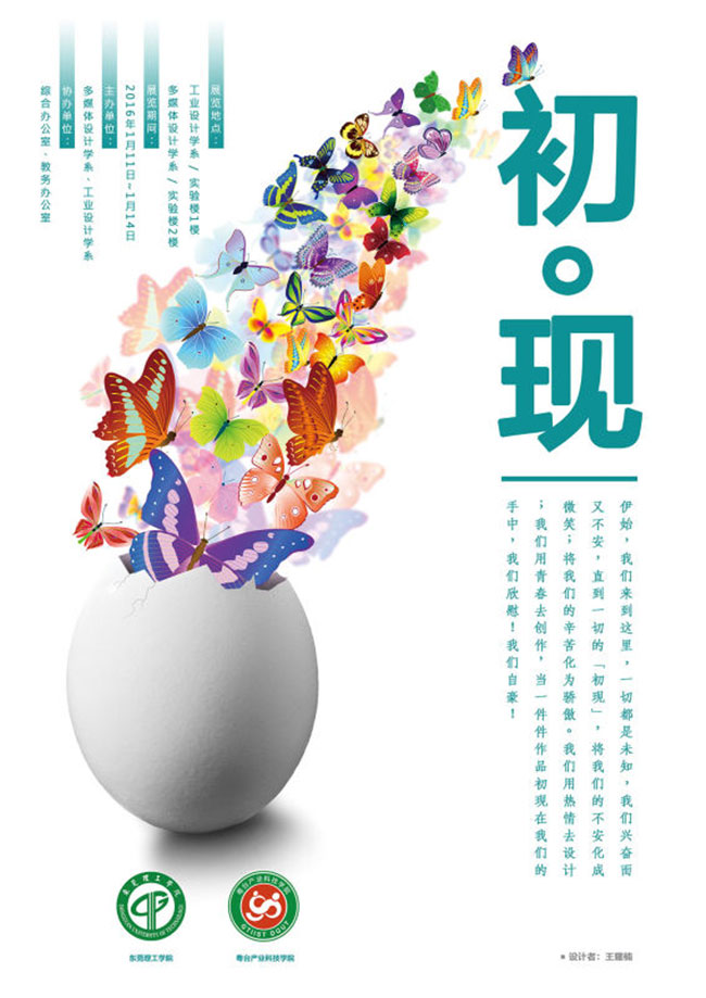 主题海报的设计以蝴蝶和蛋壳为主要载体,蝴蝶从蛋中生,象征着肉漫画