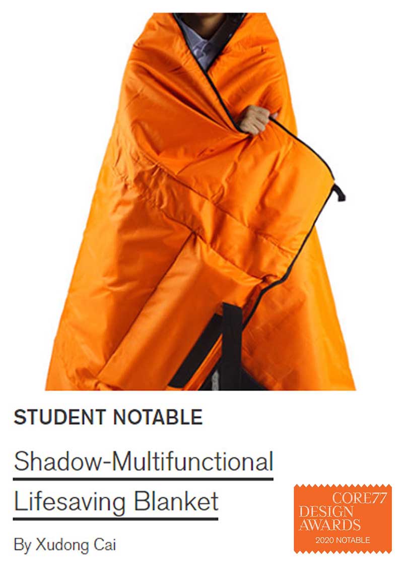 “Shadow”是一件多功能应急救援产品。它能够通过简单的扩展与变换形态后,拥有浮力助具、救生毯、简易睡袋等多种功能,可应用于紧急救援,户外探险等场景。此设计的出发点是希望能够提高普通民众遇到紧急事件的应对能力,也体现肉漫画
