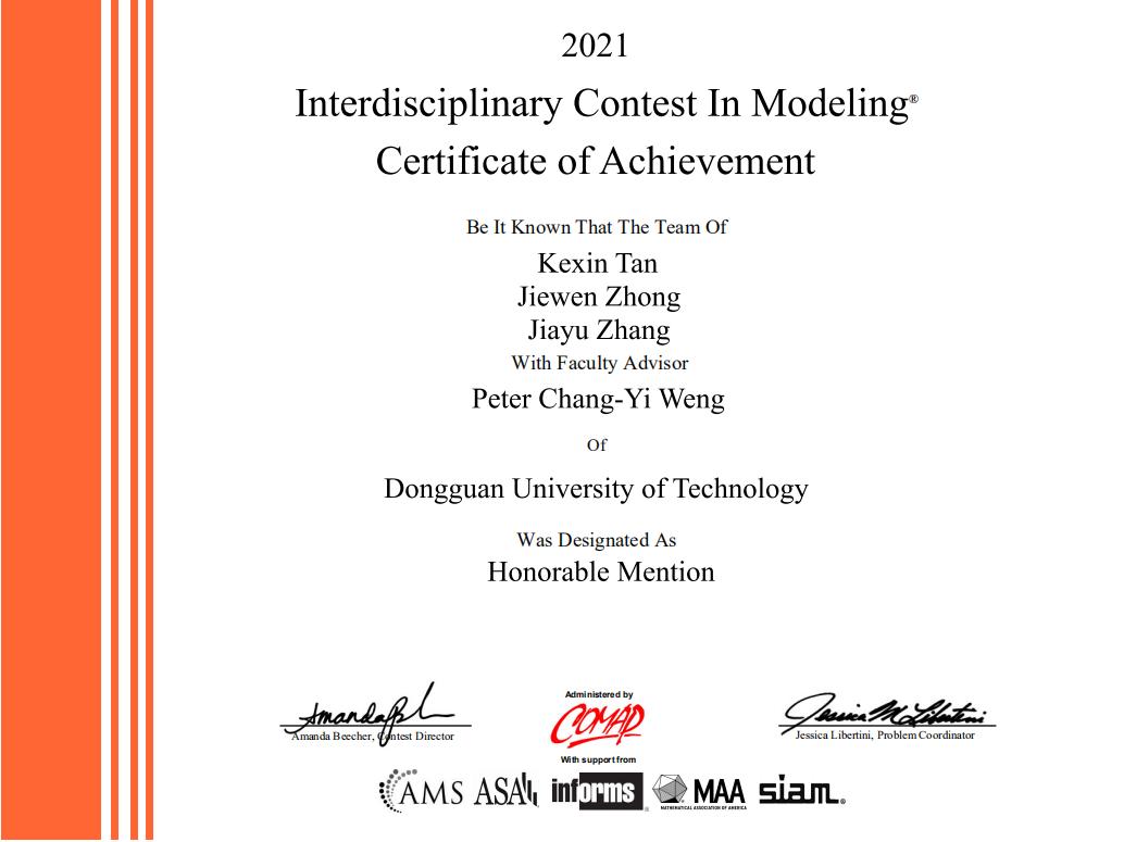 美国大学生数学建模竞赛(MCM/ICM)是由美国数学及其应用联合会主办,是著名的国际性数学建模竞赛。本次比赛吸引了来自美国、法国、英国等国家和地区的高校共26112支队伍参加。该竞赛的题目一般来源于科学与工程技术、人文与社会科学(含经济管理)等领域经过适当简化加工的实际问题,具有较大的灵活性供参赛者发挥其创造能力。参赛者根据题目要求,需要完成一篇包括模型的假设、建立和求解、计算方法的设计和计算机实现、结果的分析和检验、模型的改进等内容的论文。学生通过自身独立的强化实践,不仅提高了自身软件编程、工程设计的技能,还增强了学生今后工作的适应能力和竞争力,有利于学院培养适用型的技术人才。