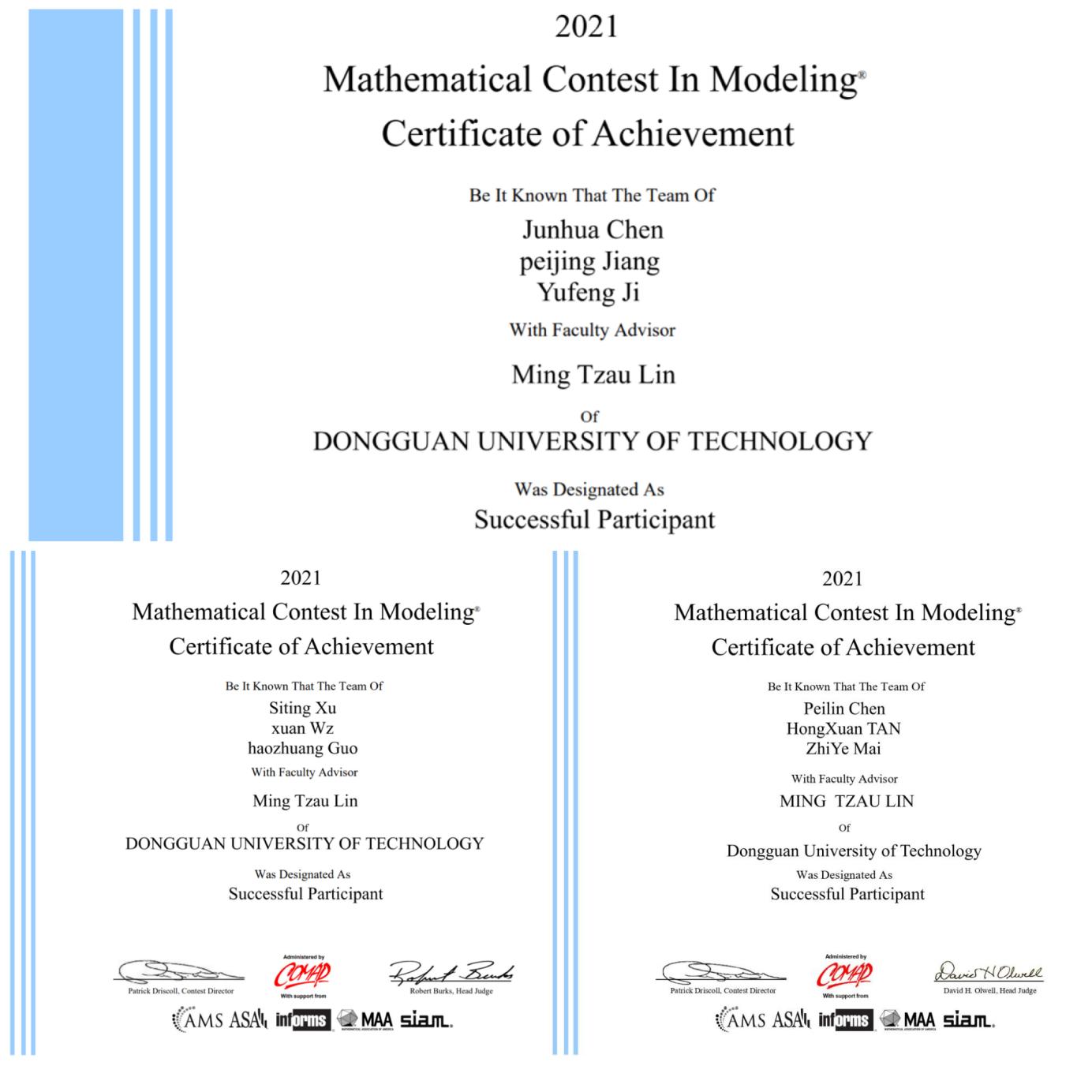 共有7支队伍参赛并获奖,包括1支队伍获Honorable Mention(二等奖),其余6支队伍获Successful Participant(三等奖)。