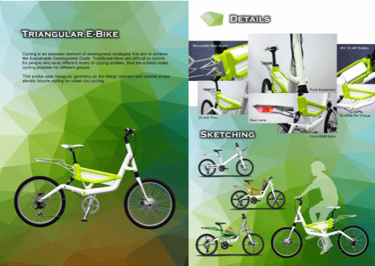 马居正老师的工业设计作品Triangular E-Bike获得2022 DiD Award 东莞杯国际工业设计大赛金奖(港澳台创新设计对接赛)。设计动机是由于自行车为实现可持续发展目标发展战略的一个基本要素。这款电动自行车使用三角形几何作为设计元素,为城市自行车创造了一种新的电动自行车造型。