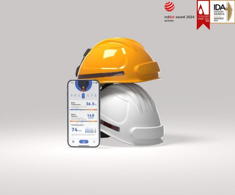 得奖作品Helpmet是一款旨在高温环境下保护建筑工人健康的智能头盔,它集成了传感器监测模块和物理信息通知模块智能监测用户的身体状况,实时地将数据传输到App,联动工人、工友和工头共同关注热相关状况的疾病风险,提供及时的预警和建议,以确保工人的安全和健康。