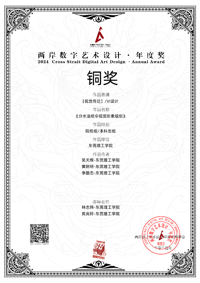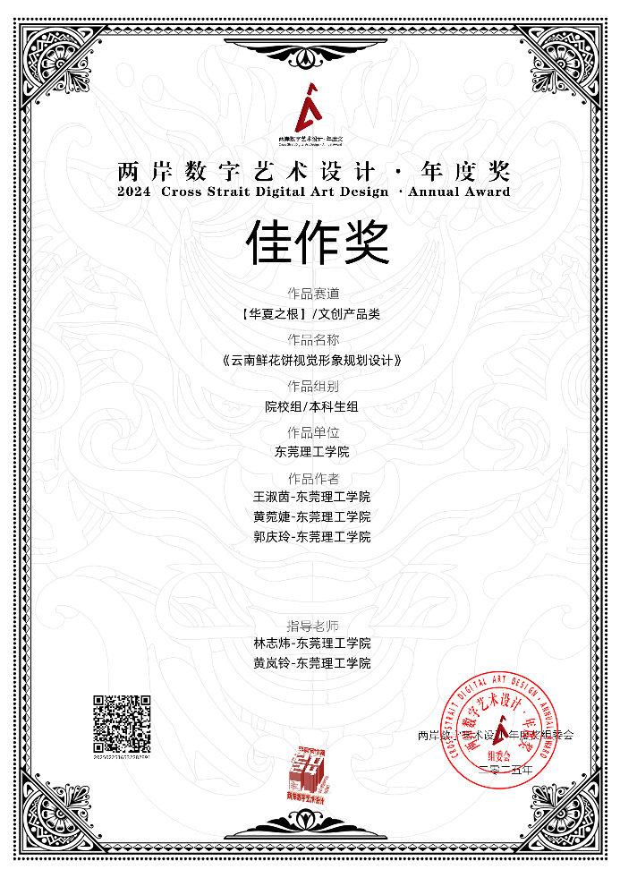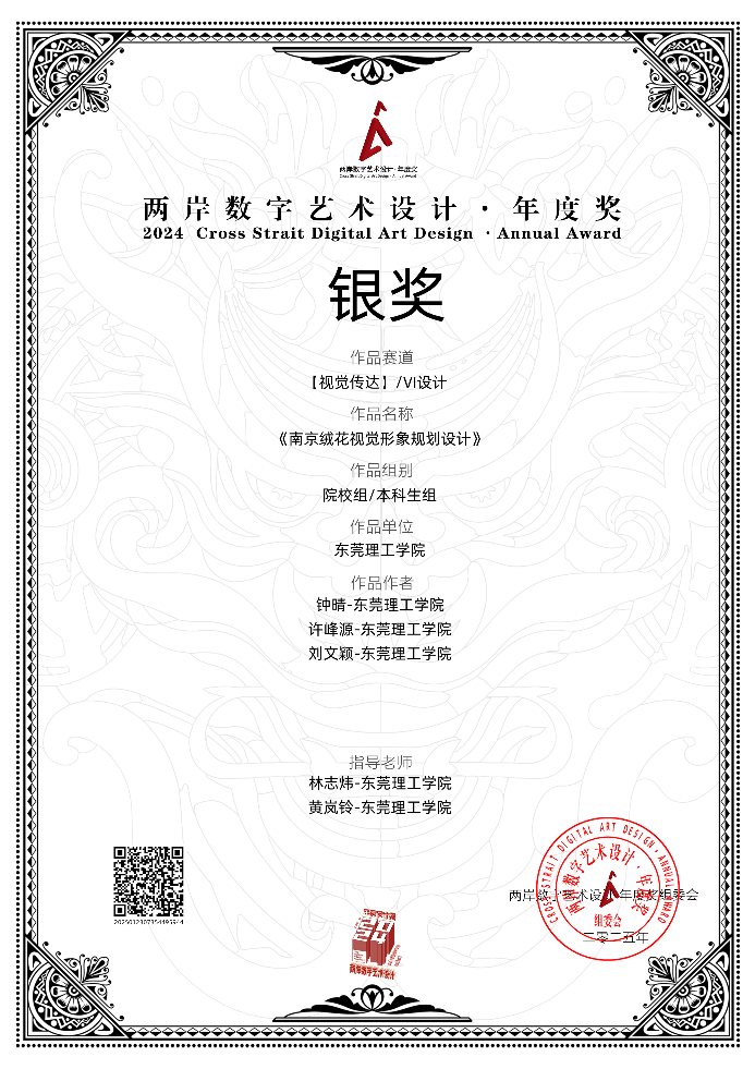 我院林志炜老师、黄岚铃老师共同指导学生参加“2024年两岸数字艺术设计年度奖”,荣获银奖2项、铜奖1项、佳作奖1项,共4项奖!