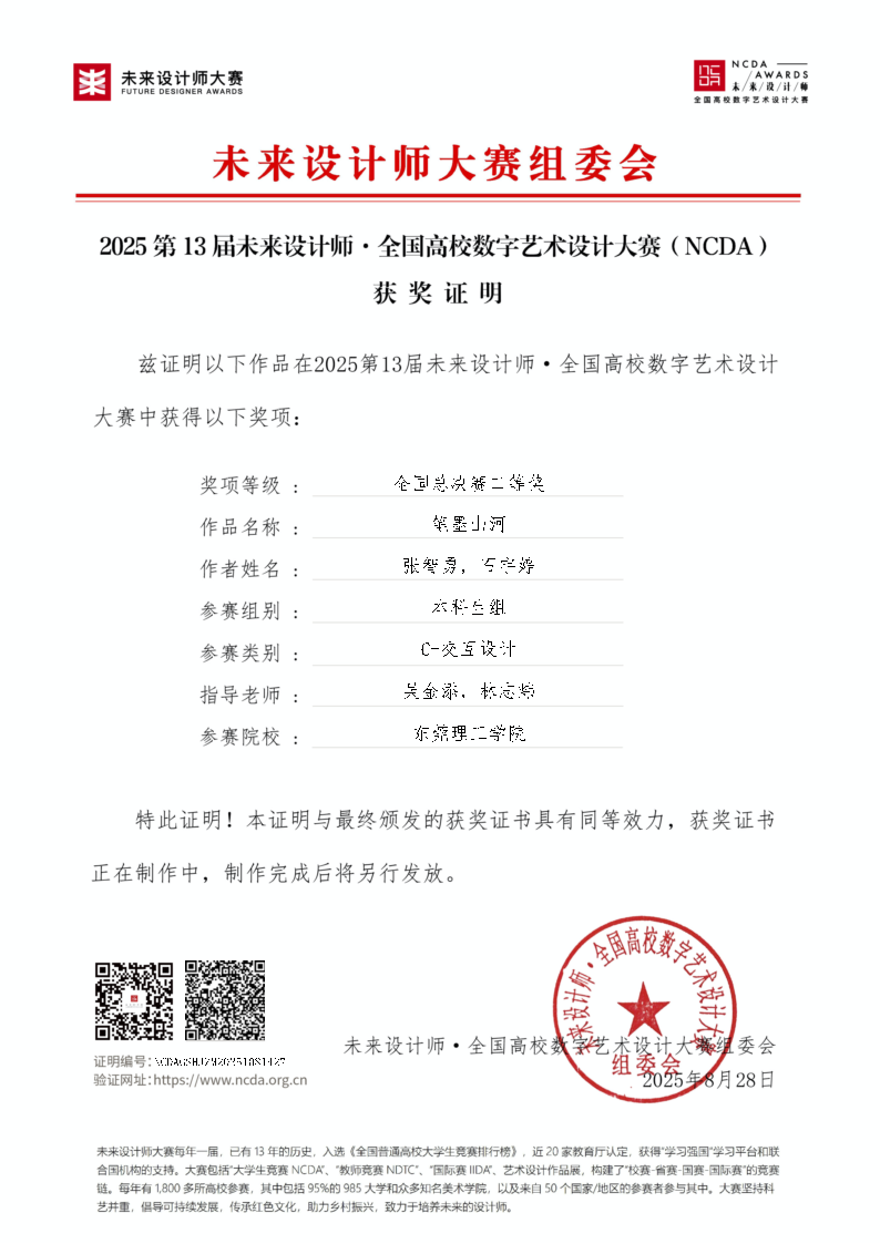 未来设计师·全国高校数字艺术设计大赛(NCDA)是入选《全国普通高校学科竞赛排行榜》,“学习强国”学习平台支持,对接联合国国际赛的国家级大学生竞赛。本届大赛共有1893所高校参赛,共征集29万余件作品,设立29个省级赛区,985、一流大学参赛率达95.2%,设计学学科评估C以上高校100%参赛。参赛作品经过校级赛、资格赛、省级初赛、省级决赛产生了各省赛区的一二三等奖,其中一二等奖晋级全国总决赛。