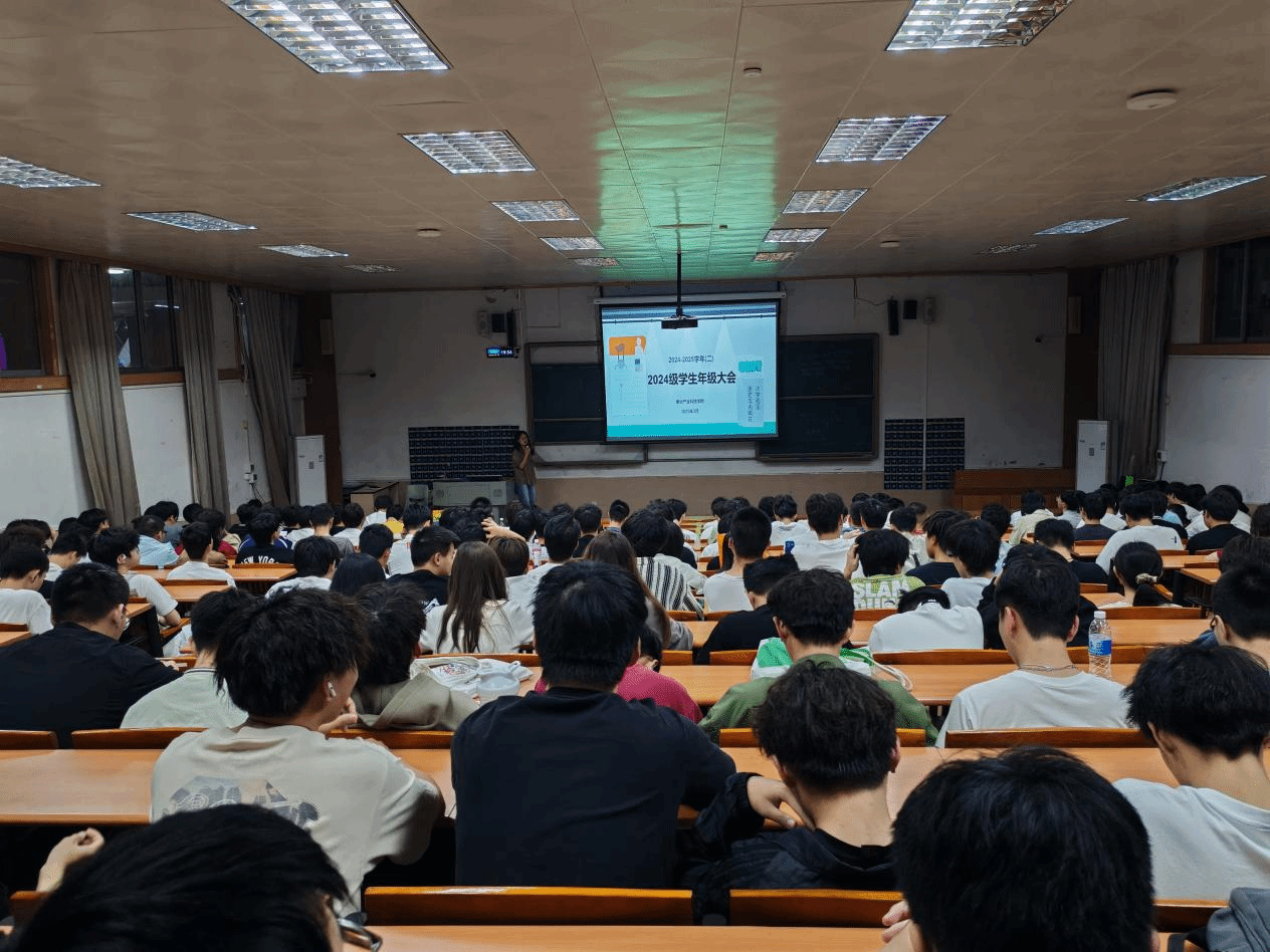 2024级学生春季学期年级大会在莞城校区课室5#1顺利举行。本次大会由学院辅导员李佳静主持,2024级全体学生参加会议。
