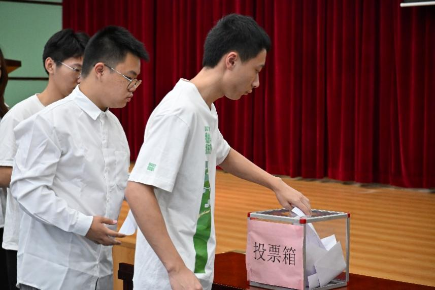 在竞选投票环节。7名学生会主席团候选人陆续上台发表竞选讲话。经民主选举,尹菲尔、周陶峰、黄鹏豪当选第肉漫画